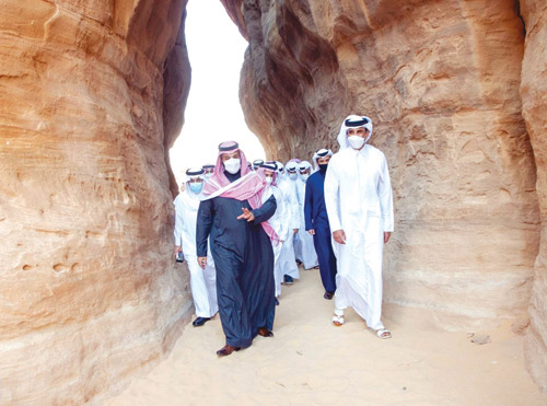 وقد صحب سمو ولي العهد سمو أمير دولة قطر في جولة على المواقع الأثرية في العلا.