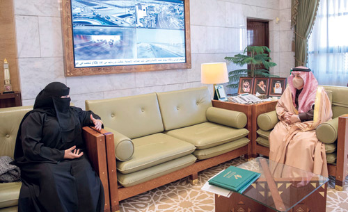 استقبل صاحب السمو الملكي الأمير فيصل بن بندر بن عبدالعزيز أمير منطقة الرياض في مكتبه بقصر الحكم أمس مدير عام جوازات منطقة الرياض العميد محمد بن عبدالعزيز السعد بمناسبة تعيينه. وتمنى سموه للعميد السعد التوفيق والنجاح في مهام عمله. كما استقبل سمو أمير منطقة الرياض في مكتبه بقصر الحكم أمس رئيس مجلس إدارة جمعية نساء المستقبل الدكتورة غريبة بنت فريح الطويهر وأعضاء الجمعية، وقدمت الدكتورة الطويهر نبذة لسموه عن الجمعية وأهدافها في تقديم برامج ومبادرات تهدف لتمكين المرأة ثقافياً واقتصادياً ومجتمعياً لمواكبة رؤية المملكة 2030. من جانبه ثمن سمو أمير منطقة الرياض دور الجمعية عبر أهدافها ورسالتها.