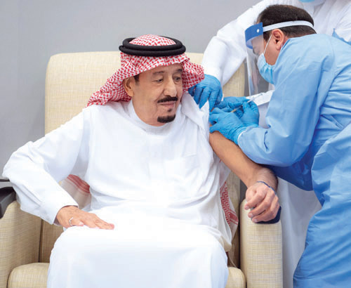 تلقى خادم الحرمين الشريفين الملك سلمان بن عبدالعزيز آل سعود -حفظه الله- أمس الأول في نيوم، الجرعة الأولى من لقاح كورونا (كوفيد - 19).