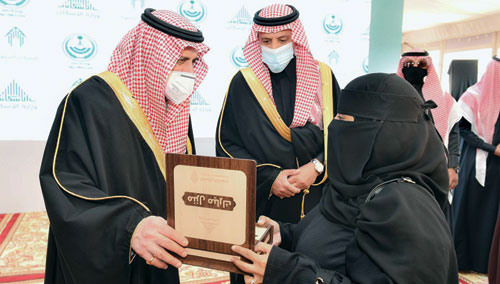 بعدها قام سموه بتسليم عدد من مستفيدي «الإسكان التنموي» وحداتهم السكنية.