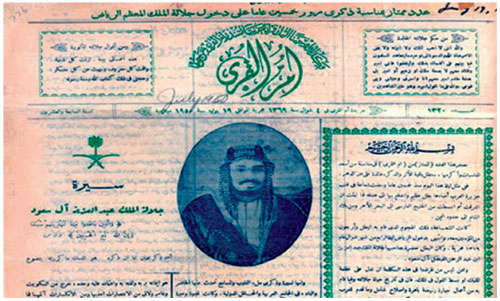 صدر في قصرنا في الرياض في هذا اليوم السابع عشر من شهر جمادى الأولى سنة 1351هـ. التوقيع عبدالعزيز- بأمر جلالة الملك، نائب جلالته فيصل.