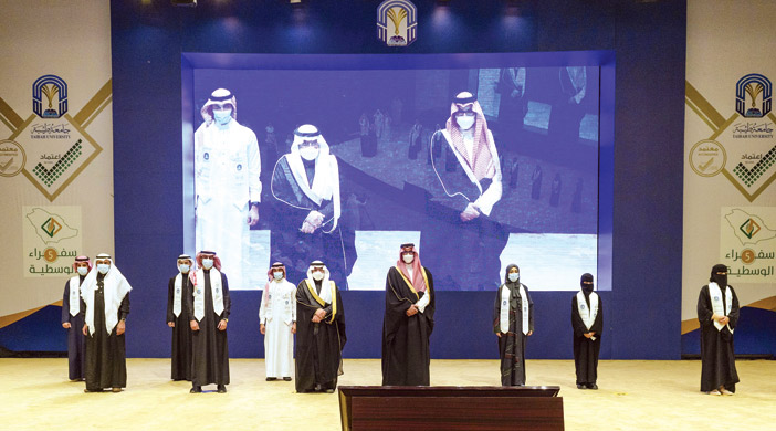 أكد صاحب السمو الملكي الأمير سعود بن خالد الفيصل نائب أمير منطقة المدينة المنورة أهمية أعمال وفعاليات برنامج «سُفراء الوسطيّة» وعنايته بتوعية شرائح المجتمع عامة، وطلاب وطالبات الجامعات السعودية خاصة بأهمية مواكبة الانطلاقة الفكرية والاقتصادية التي تقودها المملكة لتكون في مصاف الدول الكبرى فكراً واقتصاداً، من خلال تمكين وتأهيل الشباب، لحماية الأمن الفكري الوطني، ليكونوا سفراء في نشر مفهوم الوسطية والاعتدال، لمواجهة الأفكار المنحرفة. جاء ذلك خلال رعاية سموه الحفل الختامي لبرنامج سفراء الوسطية في نسخته الخامسة أمس وانطلاق فعاليات مسابقة البرنامج بين الجامعات والكليات المشاركة نيابة عن صاحب السمو الملكي الأمير فيصل بن سلمان بن عبدالعزيز أمير منطقة المدينة المنورة الذي تُنظمه جامعة طيبة بالتعاون مع مركز الملك عبدالعزيز للحوار الوطني، وعدة جهات ومؤسسات خيرية وأهلية وخاصة، ويحمل شعار «فكر». وأوضح معالي رئيس جامعة طيبة الدكتور عبدالعزيز بن قبلان السراني، في كلمته خلال الحفل أن البرنامج يستهدف أكثر من 200 طالب وطالبة يُمثلون أكثر من 40 جامعة وكلية من مختلف مناطق المملكة، لتعزيز وعيهم الفكري من خلال عدد من البرامج التدريبية والجلسات الحوارية والمحاضرات التوعوية، والندوات التوجيهية، ليكونوا سفراء للوسطية، يُسهمون في نشر المفهوم الإسلامي الوسطي المعتدل في المجتمع، مؤكداً معاليه على المنهج السعودي القويم في التمسك بالوسطية والاعتدال منهاجاً للحياة في الفكر والسلوك. من جهته أبان نائب الأمين العام لمركز الملك عبدالعزيز للحوار الوطني إبراهيم بن زايد العسيري أن المركز أدرك منذ وقت مبكر أهمية التدريب المجتمعي في نشر ثقافة وقيم الحوار، حيث أسس أكاديمية للحوار والتدريب، لتتولى تنفيذ البرامج والورش التدريبية على ثقافة الحوار والوسطية والاعتدال، إضافةً لتوجيه معظم نشاطاته لنشر هذه القيّم، مُشيراً إلى عمل المركز على توثيق علاقته مع الجهات التعليمية والفكرية في المملكة ومنهم جامعة طيبة التي يعدها المركز من الشركاء الرئيسيين لتحقيق رؤيته ورسالته عبر اتفاقيات الشراكة والتعاون، لإشراك أكبر عدد من المؤسسات الحكومية ومؤسسات المجتمع في المسؤولية الاجتماعية نحو تعزيز ثقافة الحوار التي أثمرت عن العديد من البرامج مع الجامعة، ومن أبرزها برنامج «سفراء الوسطية». عقب ذلك اطّلع سمو نائب أمير منطقة المدنة المنورة على المعرض التفاعلي الذي يلتقي فيه المشاركون بنخبة من المتخصصين في مجال الأمن السيبراني، من مؤسسات القطاع الحكومي والخاص، والأفراد، والمؤسسات غير الربحية التي تُقدم خدماتها في تعزيز الجاهزية للاستجابة للحوادث السيبرانية ودعم مهارات البحث والابتكار والمهارات لدى المشاركين. ثم كرّم الأمير سعود بن خالد الفيصل عددًا من الجهات المُشاركة والداعمة لأعمال وفعاليات برنامج «سُفراء الوسطية» في نُسخته الخامسة.