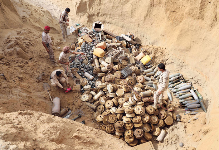 وزرعت ميليشيا الحوثي المدعومة من إيران، آلاف الألغام الأرضية والعبوات الناسفة في الأحياء السكنية والطرق العامة، وفي مختلف المناطق الخاضعة لسيطرتها، ما تسبَّب بسقوط مئات الضحايا من المدنيين، أغلبهم نساء وأطفال.