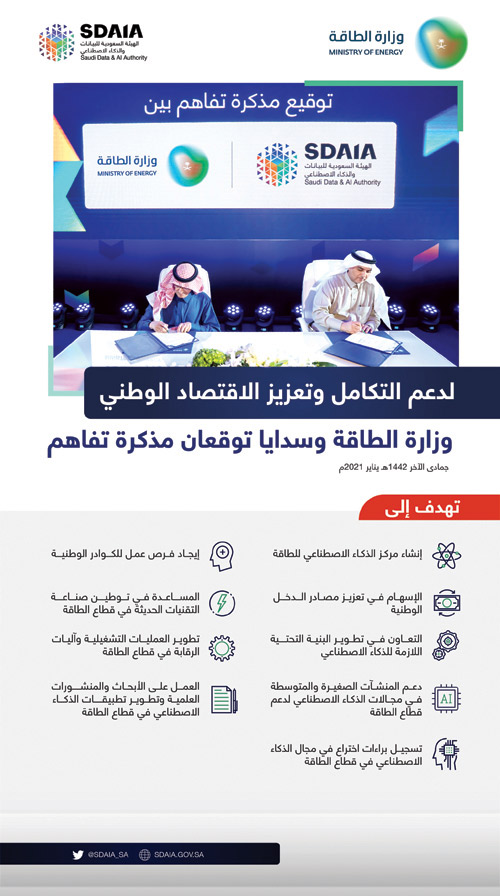 وقّع صاحب السمو الملكي الأمير عبدالعزيز بن سلمان بن عبدالعزيز وزير الطاقة مذكرة تفاهم مع معالي رئيس الهيئة السعودية للبيانات والذكاء الاصطناعي (سدايا) الدكتور عبدالله بن شرف الغامدي، تهدف إلى تعزيز الجهود الرامية لرفع ترتيب المملكة في المؤشرات العالمية الرائدة المعنية بالبيانات والذكاء الاصطناعي، والإسهام في تطوير القدرات الوطنية على البيانات ومنهجيات الذكاء الاصطناعي في المملكة. وتأتي مذكرة التفاهم في إطار دعم التكامل الحكومي بين وزارة الطاقة و(سدايا) لتحقيق الأهداف المشتركة المتعلّقة بدعم وتطوير ومراجعة وتنفيذ الإستراتيجيات في مجالات البيانات والذكاء الاصطناعي في قطاعي الطاقة والغاز. وقام سمو وزير الطاقة ومعالي رئيس سدايا بإطلاق «مركز الذكاء الاصطناعي للطاقة»، وذلك على هامش الزيارة التي قام بها سمو وزير الطاقة لمقر (سدايا) في العاصمة الرياض، حيث يهدف المركز إلى تحقيق مستهدفات رؤية المملكة 2030 المشتركة بين وزارة الطاقة وسدايا، كما سيعزز من تنافسية قطاع الطاقة، خاصة في جانب الابتكار المشترك في الذكاء الاصطناعي المرتبط بهذا القطاع، إلى جانب ذلك من المنتظر أن يسهم المركز في بناء القدرات والكفاءات الوطنية المختصة بالذكاء الاصطناعي في قطاع الطاقة الذي يُعد أحد القطاعات ذات الأولوية ضمن الإستراتيجية الوطنية للبيانات والذكاء الاصطناعي(نسدي)، مما سيعزز تحقيق مستهدفات الإستراتيجية للوصول إلى أكثر من 15 ألف متخصص في البيانات والذكاء الاصطناعي بحلول عام 2030، ودفع عجلة التعاون مع كبرى الشركات الوطنية والعالمية الرائدة في مجالات الطاقة والذكاء الاصطناعي لتوطين التقنية وتحفيز الاستثمار في مجال الذكاء الاصطناعي، إذ تستهدف (نسدي) الوصول إلى 75 مليار ريال سعودي من الاستثمارات المحلية والأجنبية في مجالات البيانات والذكاء الاصطناعي بحلول عام 2030. ومن المقرر أن تتم إدارة مركز الذكاء الاصطناعي للطاقة بصورة مشتركة من قِبل وزارة الطاقة و(سدايا) وبمشاركة أصحاب المصلحة الرئيسيين في منظومة الطاقة الوطنية. وبهذه المناسبة أكد صاحب السمو الملكي الأمير عبدالعزيز بن سلمان وزير الطاقة أن إطلاق مركز الذكاء الاصطناعي للطاقة، وتوقيع مذكرتي التفاهم تأتيان في وقت تحقق فيه رؤية المملكة 2030 نجاحات كبيرة بتوجيه من خادم الحرمين الشريفين الملك سلمان بن عبدالعزيز آل سعود، ومتابعة من سمو ولي العهد - حفظما الله-، مبيناً أن هذا المركز يأتي امتدادا لتوجهات وزارة الطاقة التي تعتمد على البيانات والذكاء الاصطناعي والابتكار والتحول كركائز أساسية لمستقبل قطاع الطاقة وتعظيم القيمة المضافة منه، وسنعمل مع سدايا بشكل تكاملي لتحقيق أهداف هذا المركز. وأوضح سموه أن منظومة الطاقة تؤمن بأهمية التكامل، والعمل كفريق حكومي مشترك مع مختلف الأجهزة ذات العلاقة، مع مراعاة مسؤولية وطبيعة عمل كل جهة، مؤكدًا أهمية العلاقة بين قطاعي الطاقة والبيانات والذكاء الاصطناعي في المملكة، حيث يشكل قطاع الطاقة نحو 40 % من الناتج المحلي الإجمالي للمملكة مع أكثر من 270 ألف شخص يعمل في القطاع، مبينًا أن البيانات في قطاع الطاقة تمثل ثروة كبيرة جدا، وتشكل فرصة ذهبية لتعزيز ريادة المملكة في تطبيق الذكاء الاصطناعي في قطاع الطاقة. وأشار سمو وزير الطاقة إلى أن هذا التعاون سيدعم تحقيق مستهدفات رؤية المملكة 2030 وعدد من الإستراتيجيات الأخرى مثل تنمية الاقتصاد السعودي وتنويعه، واستحداث الوظائف في القطاع. من جانبه عبّر الدكتور الغامدي عن سعادته بهذا التعاون المميز مع وزارة الطاقة الذي يعكس حرص الطرفين على تبنّي توطين التقنيات المتقدمة في مجال البيانات والذكاء الاصطناعي بما ينعكس على مصادر الدخل الوطنية، مبيناً أن مذكرة التفاهم تأتي في إطار جهود (سدايا) الرامية لتفعيل الإستراتيجية الوطنية للبيانات والذكاء الاصطناعي، ومساندة الجهود المتعلقة بإدراج ورفع تصنيف المملكة ضمن المؤشرات الدولية الخاصة بالبيانات والذكاء الا