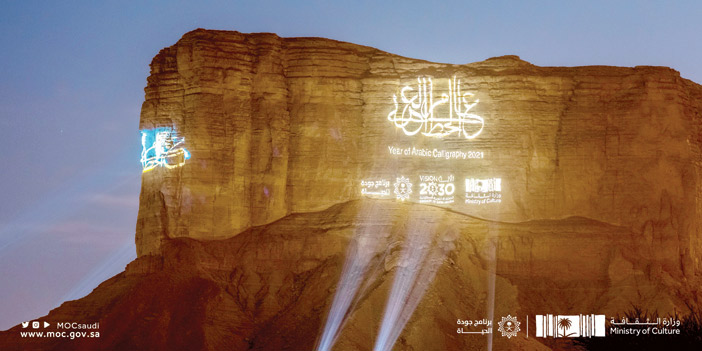 ونظمت الوزارة العرض بالتعاون مع شركة القدية للاستثمار على قمة جبل طويق بمناسبة تدشين العام الجديد لمبادرة «عام الخط العربي» 2021، وتضمن ذلك عرض ثلاثة شعارات أخرى إلى جانب شعار مبادرة عام الخط العربي، هي شعار رؤية المملكة 2030، وشعار وزارة الثقافة التي أطلقت هذه المبادرة، وشعار برنامج جودة الحياة أحد برامج تحقيق رؤية المملكة 2030.تأتي إضاءة جبل طويق ضمن مساعي وزارة الثقافة لتعزيز مبادرة «عام الخط العربي»