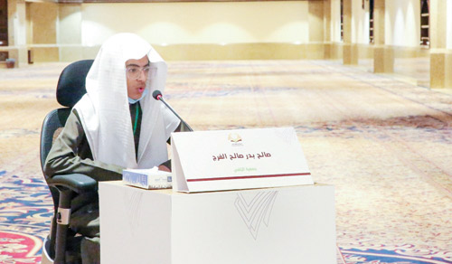 وذلك بحضور معالي الشيخ عبد العزيز بن محمد النصار الأمين العام للمسابقة يرافقه الشيخ منصور بن سليمان الغصن نائب الأمين العام للمسابقة، وأكد النصار في كلمة له أن المسابقة تأتي لتؤكد اهتمام المملكة الكبير بكتاب الله تعالى وأنها الرائدة في خدمة القرآن الكريم، والشكر لله أولاً ثم لولاة أمرنا على الاهتمام بكتاب الله تعالى في كل المجالات ومنها مجال جمعيات تحفيظ وتعليم القرآن الكريم وخاصة جمعية تحفيظ القرآن بالرياض «مكنون». وقدم النصار شكره لراعي هذه المسابقة صاحب السمو الملكي الأمير فيصل بن بندر أمير منطقة الرياض على رعايته واهتمامه سائلاً الله عز وجل أن يجزل له الأجر والمثوبة.
