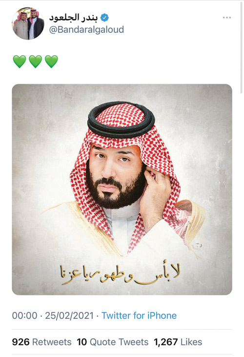 وقال الإعلامي سلمان الدوسري «يحبونه ويتابعون أخباره… يفرحون لسلامته… ويدعون ربهم يحفظه… ليس فقط لأنه ولي عهدهم و قائد رؤيتهم… يكفي أنه محمد بن سلمان ويكفي أنهم شعبه وسنده».