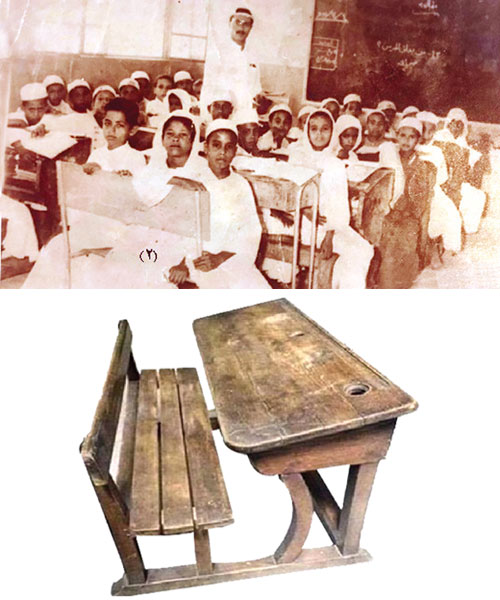 قبل أكثر من خمسين عاماً لم تكن لدى المعلمين ثقافة ( مكتب المعلم) ولم تكن المقاعد المشتركة يظفر بها كلّ معلم، وحتى أقرّب الصورة أكثر سأعرض بعض صور مقاعد الطلاب حيث توضح الصورة الأولى مقاعد الطلاب والطالبات ولا سيّما أن بداية انتشار مدارس الطالبات بدأ عام 1381هـ.