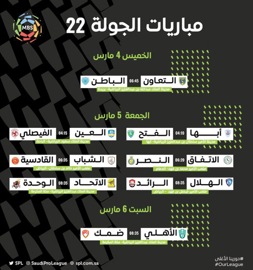 كما قررت اللجنة إقامة مباراة فريقي الأهلي وضمك في الجولة 22 من مباريات دوري كأس الأمير محمد بن سلمان للمحترفين على ملعب مدينة الملك عبدالعزيز الرياضية بمكة المكرمة، ومباراة فريقي الأهلي والنصر في الجولة 23 من نفس المسابقة على الملعب الرديف في مدينة الملك عبدالله الرياضية بجدة.