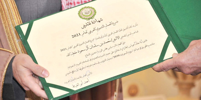 نيابة عن صاحب السمو الملكي الأمير محمد بن سلمان بن عبد العزيز آل سعود، ولي العهد نائب رئيس مجلس الوزراء وزير الدفاع - حفظه الله -، تسلّم صاحب السمو الأمير فيصل بن فرحان بن عبد الله وزير الخارجية أمس، شهادة تقدير درع العمل التنموي العربي لعام 2021م التي منحتها جامعة الدول العربية، تقديرًا لدور سمو ولي العهد في تعزيز النهج التنموي الشامل في المملكة العربية السعودية والوطن العربي، وجهوده في دعم وتعزيز العمل العربي المشترك في المجالات كافة، خدمةً لأمن واستقرار ونماء وازدهار المنطقة. جاء ذلك خلال استقبال معالي الأمين لجامعة الدول العربية أحمد أبو الغيط لسمو وزير الخارجية بمكتبه بمقر الجامعة العربية على هامش زيارته للقاهرة للمشاركة في أعمال اجتماع الدورة العادية الـ (155) لمجلس الجامعة العربية على مستوى أصحاب السمو والمعالي وزراء الخارجية التي ستعقد في وقتٍ لاحق. وقال الأمين العام لجامعة الدول العربية أحمد أبو الغيط خلال الاستقبال: « إنه يسعدني ويشرفني أن أقدم اليوم شهادة تقدير درع العمل التنموي العربي، من اللجنة العليا للتنسيق بالجامعة العربية كشهادة تقدير لصاحب السمو الملكي الأمير محمد بن سلمان بن عبدالعزيز آل سعود ولي العهد نائب رئيس مجلس الوزراء وزير الدفاع، تقديراً لجهوده وأدائه وما يفعله لخدمة المملكة العربية السعودية. وأضاف قائلاً: « إن هذا الرجل الحكيم يعمل من أجل أمته»، معربا عن أمله في أن يتسلم سمو ولي العهد درع العمل التنموي فور انتهاء جائحة كورونا، لكن إلى ذلك الحين، فأقدم شهادة التقدير بهذا الشأن «حضر مراسم التسليم وكيل وزارة الخارجية للشؤون الدولية المتعددة السفير عبدالرحمن الرسي، وسفير خادم الحرمين الشريفين لدى جمهورية مصر العربية، مندوب المملكة الدائم لدى جامعة الدول العربية أسامة بن أحمد نقلي، ومدير عام مكتب سمو وزير الخارجية عبدالرحمن بن أركان الداود. يذكر أن «درع العمل التنموي العربي» يعد جائزة سنوية تمنحها الجامعة العربية لشخصيات قيادية وريادية عربية لديها إسهامات معروفة وملموسة ومؤثرة في مجال التنمية بمعناها الشامل، وبما يُفسح المجال أمام تعميم التجارب والاستفادة من الخبرات على أوسع مدى ممكن. ويتمُ الإعلان عن الفائز بجائزة «درع العمل التنموي العربي» في كل عام حيث يقوم الأمين العام لجامعة الدول العربية بتسليم الجائزة للشخصيات الحائزة على التكريم. وتهدالجامعة من الجائزة إلى تسليط الضوء على النماذج الناجحة والمُلهمة في مجال التنمية على الصعيد العربي لينتبه إليها المهتمون والعاملون في هذه المجالات ويتطلعون إلى الاستفادة منها واستلهامها.
