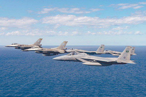 كما حضر الفريق الرويلي استعراضًا للطائرات القتالية المشاركة من أمام المنصة لمناورات تمرين «عين الصقر 1» في قاعدة سودا الجوية باليونان والالتقاء بالمشاركين، حيث واصلت طائرات القوات الجوية الملكية السعودية F-15C وطائرات القوات الجوية اليونانية F-16 و»ميراج-2000» و»فانتوم ف-4) طلعاتها الجوية في سماء البحر الأبيض المتوسط، لتنفيذ العديد من السيناريوهات التدريبية التي تشتمل على عمليات مضادة بنوعيها الهجومية منها والدفاعية وعمليات الإسناد الجوي، والمناورات الجوية المختلفة.