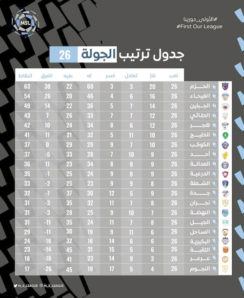 وتُختتم مباريات الجولة 27 غداً الاثنين بأربعة مباريات حيث يستضيف الكوكب متصدر الدوري فريق الحزم على ملعب الشعلة في الخرج، ويلقي فريق نجران بفريق الدرعية في الرياض، ويستضيف الطائي ضيفه فريق النهضة في حائل، ويحل الجيل ضيفاً على جاره فريق العدالة في الأحساء.