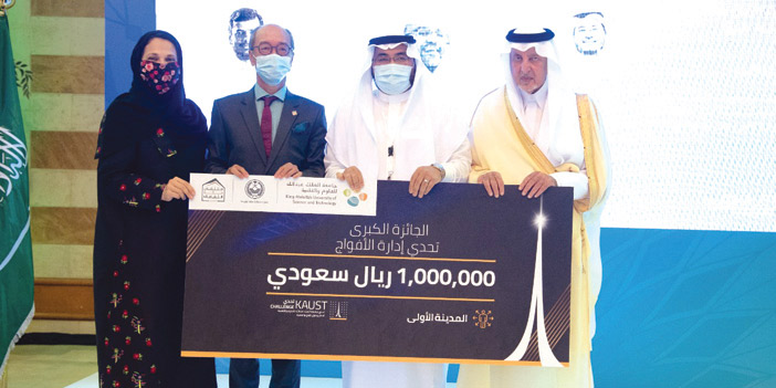 وكرَّم سموه الفائزين في مسابقة تحدي جامعة الملك عبدالله للعلوم والتقنية الهادفة لإيجاد أفكار وحلول رقمية للحج والعمرة بجوائز تبلغ قيمتها مليون و300 ألف ريال وهم الفائزون بالجائزة الكبرى وقيمتها مليون ريال تحدي الأوضاع المحيطة ومساندة القرارات التنبؤية، وفي تحدي الرعاية الصحية فازت منصة صفا الرقمية للإشراف على صحة الحجاج والمعتمرين وقيمة الجائزة 100 ألف ريال، وفي تحدي إدارة الأفواج فازت مبادرة إدارة الأفواج من خلال منصة الحج الذكية وقيمة الجائزة 100 ألف ريال، وفازت في تحدي النقل والمواصلات مبادرة تعزيز تنقلات الحجاج والمعتمرين من خلال الذكاء الاصطناعي وقيمتها 100 ألف ريال.