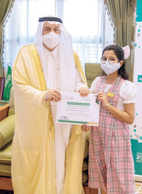 كرَّم صاحب السمو الملكي الأمير فيصل بن بندر بن عبد العزيز أمير منطقة الرياض في مكتبه بقصر الحكم أمس, الفائزين والفائزات بمسابقة مدرستي الرقمية. ونوه سموه بما تحقق من منافسة مفيدة الجميع بها فائز سواء بالمشاركة أو التميز في المستوى , معرباً عن شكره للمعلمين والمعلمات والطلاب وأولياء أمورهم كافة, متمنياً لهم التوفيق والنجاح. كما أشاد بدور وجهد القائمين بالتعليم بالمنطقة في إنتاجيتهم المثمرة ووصولهم لمستويات عالية ومشرفة.
