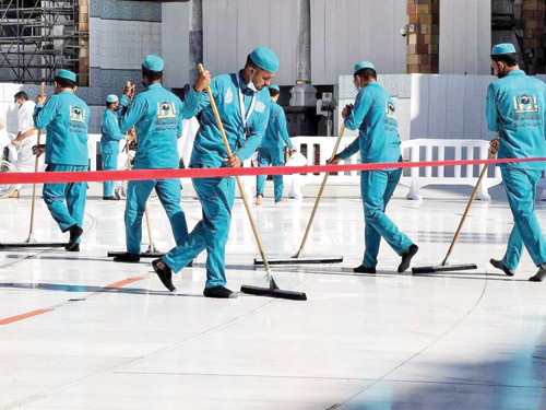 كثفت وكالة الرئاسة العامة للشؤون الفنية والخدمية بالمسجد الحرام أمس عمليات التطهير والتعقيم والتشغيل إضافة إلى توزيع عبوات ماء زمزم ذات الاستخدام الواحد على المصليات والمطاف والساحات والزوار بشكل عام، كما قامت بفتح أبواب المسجد الحرام وتنظيم الدخول والخروج منها وتحديد مسارات ذوي الاحتياجات الخاصة من خلالها، وغيرها من الخدمات التي تشرف عليها الرئاسة.