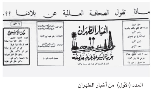 صدرت جريدة الظهران أو أخبار الظهران فيما بعد في مدينة الدمام قاعدة المنطقة الشرقية من المملكة، إذ صدر عددها الأول يوم الأحد الأول من شهر جمادى الأولى 1374هـ الموافق 26 كانون الأول 1954م. وكانت تطبع أعدادها الأولى في بيروت، وكان اسمها الظهران، رأس تحريرها عبدالله بن عبدالرحمن الملحوق ويديرها عبدالكريم بن جهيمان.
