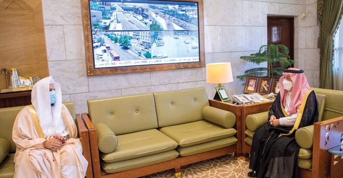 من جهة ثانية استقبل سمو أمير منطقة الرياض في مكتبه بقصر الحكم أمس رئيس المحكمة العامة بمنطقة الرياض الشيخ الدكتور عبدالعزيز المزيد الذي قدم للسلام على سموه وتهنئته بشهر رمضان المبارك. وقد بادله سموه التهنئة بهذه المناسبة، داعياً الله تعالى أن يتقبل من الجميع صالح الأعمال.