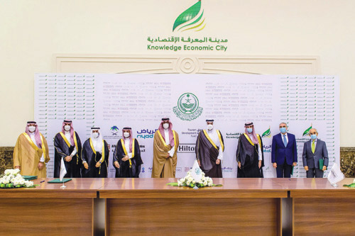 وشملت الاتفاقيات التي شهد سموه مراسم توقيعها، بحضور صاحب السمو الملكي الأمير سعود بن خالد الفيصل نائب أمير المنطقة، اتفاقية ثلاثية بين كل من صندوق التنمية السياحي وبنك الرياض كطرف، وشركة مدينة المعرفة الاقتصادية كطرف ثانٍ، يقوم بموجبها صندوق التنمية السياحي وبنك الرياض بتوفير تمويل قدره (782) مليون ريال لصالح تنفيذ مشروع ملتقى مدينة المعرفة لتمويل تكلفة إنشاء المرحلة الأولى للمشروع المتضمنة السوق التجاري، وفندق الهيلتون، والممشى التجاري «البوليفارد»، والمنطقة الترفيهية، والمركز الصحي والمركز الرياضي وذلك بدعم وتمكين من هيئة تطوير منطقة المدينة المنورة.