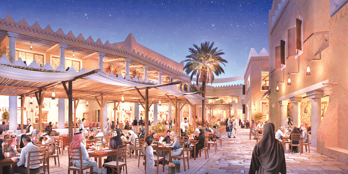 وكشف المخط العام للمشروع أن المطاعم استلهمت تصاميمها من العمارة النجدية التقليدية، لمعايشة أجواء تراثية قديمة، ومشاركة تجربة لا مثيل لها في 19 مطعماً ومقهى، تقدم مفهومًا ونوعاً جديدًا من الطعام والشراب، كما يُحتفى أيضاً بالمطبخ السعودي التقليدي، واستضافة العديد من الأطباق الجديدة التي تهم الزوار والضيوف والسياح من مختلف أنحاء العالم.