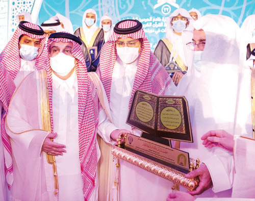 وفي نهاية الحفل كرم سمو أمير منطقة الرياض, أعضاء لجنة التحكيم، والفائزين في فروع المسابقة بجوائز نقدية مع درع التميز، كما التقطت الصور التذكارية بهذه المناسبة.