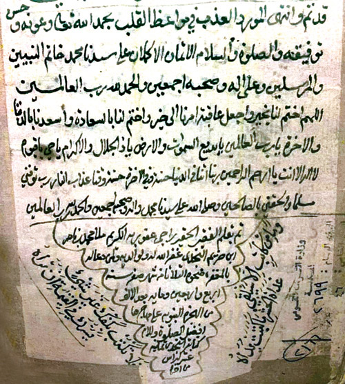 (10) ثم جَردٌ لنسبٍ هكذا: (نسب آل الشيخ عبد القادر، الشيخ صالح ابن الشيخ عبد القادر ابن الشيخ ساري ابن الشيخ ضاعن ابن الشيخ اصبع ابن الشيخ علي ابن الشيخ عبد السلام ابن الشيخ ساري ابن الشيخ أحمد ابن الشيخ محمد ابن الشيخ إبراهيم ابن الشيخ حسن ابن الشيخ محمد ابن الشيخ عبد الأعلى ابن الشيخ شهاب الدين أحمد ابن الشيخ نور الدين محمد ابن سيدنا العباس ابن عبد المطلب الهاشمي القرشي قدس الله روحه ونور ضريحه ونفعنا الله من بركاته الجميع آمين ونسأل الله الكريم أن يوفقنا وإياكم للصواب ويدخلنا الجنة بغير حساب إنه كريم وهاب آمين يا رب العالمين) .