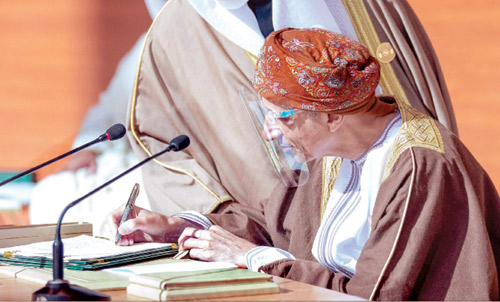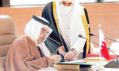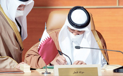 إثر ذلك وقع قادة ورؤساء وفود دول مجلس التعاون الخليجي على البيان الختامي للقمة وبيان العلا.
