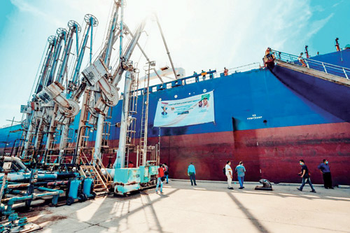 وصلت أمس الأول إلى ميناء عدن أولى دفعات منحة المشتقات النفطية المقدمة من المملكة العربية السعودية عبر البرنامج السعودي لتنمية وإعمار اليمن، وذلك بالتنسيق والتعاون مع الحكومة اليمنية والسلطات المحلية، لتشغيل أكثر من 80 محطة يمنية بقيمة 422 مليون دولار أمريكي، وتبلغ إجمالي كمياتها 909.591 طنًا متريًا من الديزل، و351.304 أطنان مترية من المازوت؛ دعمًا لتحقيق الاستقرار المعيشي والاقتصادي للشعب اليمني، وامتدادًا للدعم السخي التي تقدمه المملكة العربية السعودية للجمهورية اليمنية في جميع المجالات، وتأكيدًا على أواصر الأخوة والروابط المتينة بين البلدين الشقيقين، وتزامناً مع مطلع أشهر الصيف التي تمثل ذروة الاستهلاك الكهربائي مع ارتفاع درجات الحرارة.