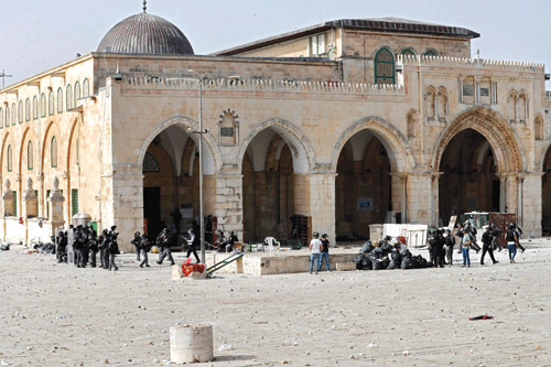 اعتلت قوات الاحتلال الإسرائيلي أمس سطح المصلى القبلي بالمسجد الأقصى. وأفادت مصادر محلية وشهود عيان في القدس بأن بعض قناصة الاحتلال انتشروا فوق أسطح المسجد الأقصى وفوق البنايات المجاورة له، فيما اقتحم جنود الاحتلال مكتب إدارة المسجد الأقصى وعيادة المسجد الأقصى، وعملوا على إخلاء كل المرافق فيه. وأطلقت مآذن القدس المحتلة نداء موحدًا لأبناء الشعب الفلسطيني في مختلف أماكنهم للتدخل من أجل فك الحصار الذي تفرضه قوات الاحتلال على المسجد الأقصى منذ ثلاث ساعات، ولإنقاذ المصلين المحتجزين. وفي ذات الشأن يعقد مجلس جامعة الدول العربية على مستوى وزراء الخارجية العرب اجتماعًا طارئًا اليوم عبر تقنية الاتصال المرئي، برئاسة دولة قطر الرئيس الحالي لمجلس الجامعة العربية، وذلك بناء على طلب دولة فلسطين الذي أيده عدد من الدول العربية.