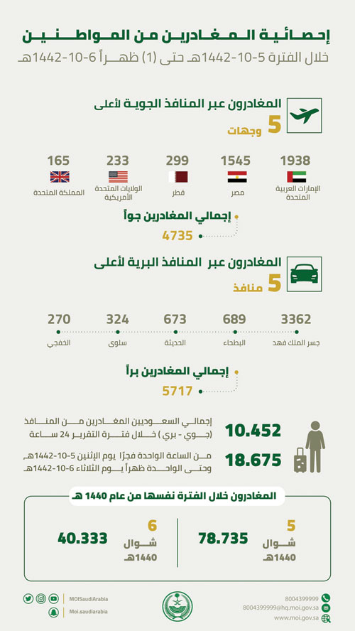 وأكد التعميم على ضرورة تسجيل جميع المسافرين المحصنين القادمين إلى المملكة من غير المواطنين السعوديين والفئات المستثناة في البوابة الإلكترونية المخصصة لتسجيل اللقاح إلكترونيًا، مع الالتزام بجميع الاشتراطات المطلوبة.