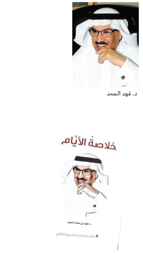 ** تستحق مسيرة معالي الدكتور «فهد بن معتاد بن شفق بن مفلح الحمد» أن تُروى فهي رواءٌ، وأن تَستأثر فهي ثراءٌ، وأن تُعقد لها ندوات لتعريف الشباب بقيم السعي والوعي وتحديد المسار ومعنى الإصرار ولذة الوصول.