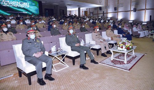 حضر الحفل كل من معالي مساعد وزير الدفاع للشؤون التنفيذية الدكتور خالد البياري، ومعالي نائب رئيس هيئة الأركان العامة قائد القوات المشتركة المكلف الفريق الركن مطلق بن سالم الأزيمع، وأصحاب المعالي والسمو قادة أفرع القوات المسلحة وكبار ضباط القوات المسلحة.