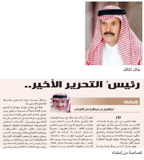 (قاد «أبو بشار» العملَ الصحفيَّ المؤسسيَّ أكثر من نصف قرن، وما الظنُّ أن أحدًا ماثله في هذا الإنجاز؛ فقد توارى رفاقُ الدرب المخضرمون، وانتحى الجيل الذي تلاه ومن تلاهم، وقدّم المالك - خلال عقودٍ - تجربةً تستحق الدراسة؛ فرئاسته الأولى لتحرير «الجزيرة» كوَّنت بناءً «مكتملًا» رسم عليه اسمَه ووسمَه، وحين عاد إليه - بعد غياب خمسة عشر عامًا- ألفاه «مكتهلًا» فأعاده جديدًا نضِرًا، وإذ تولى رئاسة هيئة الصحفيين فإن مسؤوليته تخطت «الجزيرة» سعيًا لإنقاذ المهنة الصحفيّة التي تحتاجُ إلى عمليةٍ جراحيةٍ كبرى تشبهُ تلك التي رافقت إلغاءَ صحافةِ الأفراد.