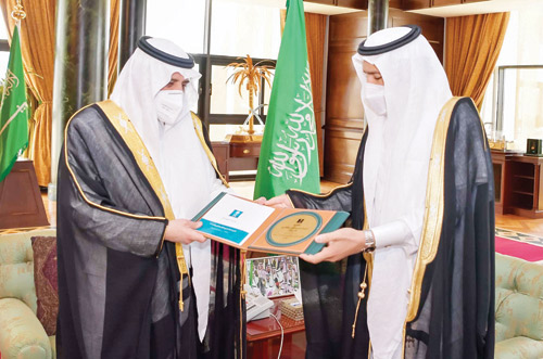 استقبل صاحب السمو الملكي الأمير فهد بن سلطان بن عبدالعزيز أمير منطقة تبوك بمكتبه أمس, مدير فرع وزارة التجارة بالمنطقة المهندس سالم الوباري، ومجموعة من الموظفين والموظفات المتميزين في خدمات قطاع الأعمال والرقابة التجارية بالفرع. وفي بداية اللقاء هنأ سموه الموظفين الحاصلين على جائزة التميز, حاثاً الجميع على بذل الجهود لتقديم خدمات نوعية لقطاع الأعمال والمستهلك. واطلع سموه على تقرير عن إنجازات وأعمال الفرع خلال الربع الأول والثاني للعام 2021م, مشتملاً على الأعمال الرقابية التي تتعلق بحماية المستهلك في مدينة تبوك والمحافظات والمراكز التابعة لها, وعن ما قدمه الفرع لخدمة قطاع الأعمال، وما تم إنجازه من أعمال خلال فترة الجائحة، والتأكد من مدى التزام المنشآت التجارية ومنسوبيها بالإجراءات الاحترازية والوقائية لفيروس كورونا «كوفيد 19».