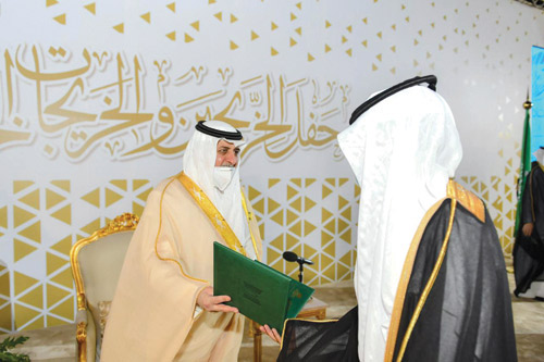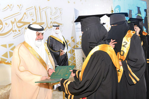جاء ذلك في تصريح صحفي لسموه بعد أن رعى مساء أمس حفل تخريج الدفعة الخامسة عشرة من طلاب وطالبات جامعة تبوك من حملة درجة البكالوريوس وحملة درجة الماجستير وخريجي الدبلومات للعام الجامعي 1422هـ والبالغ عددهم (7071) خريجاً وخريجة، وذلك في مقر الصالة الرياضية بالمدينة الجامعية.