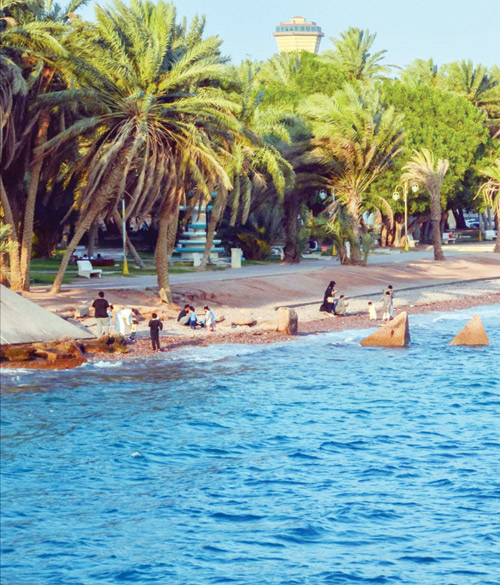يطل على خليج العقبة، حيث الجبال التي تحيط بها وتبعد عن مدينة العقبة الأردنية بمسافة لا تتجاوز الـ30 كم، فيعتبرها البعض لوحة فنية طبيعية من إبداع الخالق سبحانه وتعالى، حيث يختلط اليابس والماء في مشهد طبيعي مدهش وتتميز بإطلالة تشاهد من خلالها بالعين المجردة بعض دول الجوار، حيث تطل على ثلاث دول هي مصر والأردن وفلسطين ولجمال هذه المدينة فقد كتب عنها المؤرِّخون مثل حمد الجاسر -رحمه الله- وقيلت فيها الأشعار، حيث قال الشاعر: