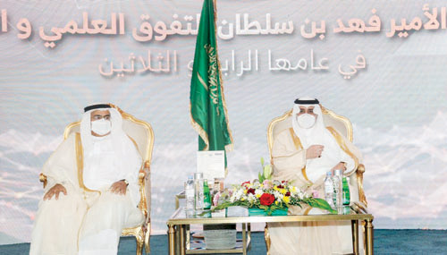 رعى صاحب السمو الملكي الأمير فهد بن سلطان بن عبدالعزيز أمير منطقة تبوك رئيس اللجنة العليا لجائزة سموه للتفوق العلمي والتميُّز مساء أول أمس، حفل جائزة سموه للتفوق العلمي والتميُّز في عامها الـ34, وذلك بفندق جراند ملينيوم, حيث كان في استقبال سموه أعضاء اللجنة العليا للجائزة.
