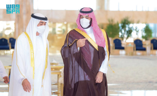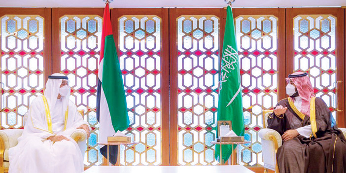 وكان صاحب السمو الشيخ محمد بن زايد آل نهيان ولي عهد أبوظبي نائب القائد الأعلى للقوات المسلحة بدولة الإمارات العربية المتحدة قد وصل يوم أمس الرياض وكان في استقباله لدى وصوله مطار الملك خالد الدولي، صاحب السمو الملكي الأمير محمد بن سلمان بن عبدالعزيز، ولي العهد نائب رئيس مجلس الوزراء وزير الدفاع.