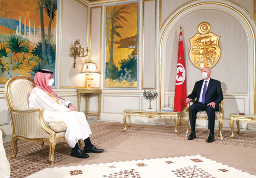 استقبل فخامة الرئيس قيس سعيد رئيس جمهورية تونس، في قصر قرطاج بالعاصمة تونس أمس، صاحب السمو الأمير فيصل بن فرحان بن عبدالله وزير الخارجية.