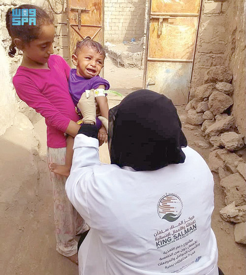 ويأتي ذلك امتداداً لدور المملكة الإنساني ممثلا بالمركز لدعم المحتاجين الذين يعانون من سوء التغذية والأمهات الحوامل والمرضعات في اليمن وفقاً لما يمرون به.