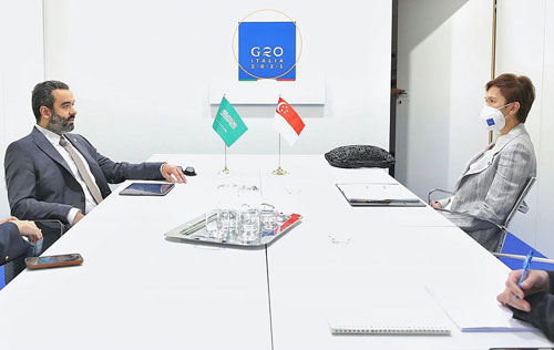 عقب ذلك التقى معاليه، وزيرة الاتصالات والمعلومات والمسؤولة عن مبادرة الأمة الذكية والأمن السيبرانى في سنغافورة جوزفين تيو، وجرى خلاله استعراض الفرص الاستثمارية الواعد التي تزخر بها المملكة في مجالات تقنية المعلومات والفضاء والابتكار.