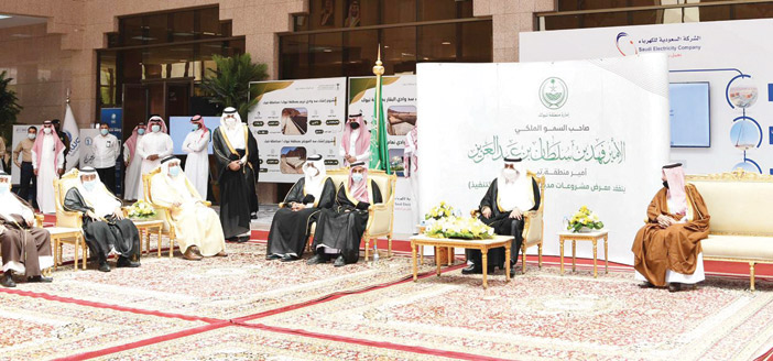 وكان سمو أمير منطقة تبوك قد استمع فور وصوله لمقر معرض المشروعات المقام بمركز الأمير سلطان الحضاري لكلمة من وكيل إمارة منطقة تبوك للشؤون التنموية ناصر بن أحمد بن عبدالرحمن الخريصي الذي رحب في مستهلها بسمو الأمير فهد بن سلطان، مؤكداً حرص سموه على متابعة المشاريع لحظة بلحظة بما حرصت عليه حكومة خادم الحرمين الشريفين وسمو ولي العهد الأمين - أيدهما الله - على تنفيذ مشاريع الخير والنماء في وطننا المعطاء.