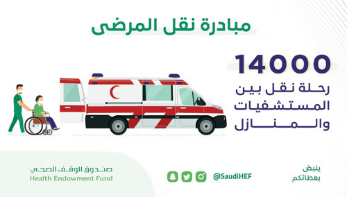 - نفذ صندوق الوقف الصحي 12 مبادرة نوعية، بالتعاون مع الجهات ذات العلاقة، أسهمت - بفضل الله - في التخفيف من الآثار المترتبة على جائحة فيروس كورونا؛ حيث شملت مبادرة الغسيل الكلوي العادي والمتنقل للمرضى، والتي بلغ عدد جلساتها 27292 جلسة ومبادرة نقل المرضى خلال فترة منع التجول التي بلغ عدد رحلاتها 14 ألف رحلة، ومبادرة خدمات الرعاية المنزلية التي استفاد منها 40550 مريضًا في أنحاء المملكة المختلفة، بالإضافة إلى مبادرة العيادات المتنقلة التي استفاد منها 95 ألف شخص في الأحياء المكتظة بالسكان. كما اشتملت المبادرات على دعم 23 بحثًا طبيًّا متخصصة في علاج كورونا، وإنشاء مستشفيات ميدانية في الرياض، ومكة المكرمة، والمدينة المنورة، بسعة 550 سريرًا، واستحداث 120 وحدة عناية مركزة في 4 مستشفيات، بالإضافة إلى توفير المستلزمات الطبية لرجال الأمن في مناطق المملكة كافة، ودعم تأسيس مركز اتصال التطوع الصحي، وتوفير الاحتياجات الطبية للمحاجر الصحية، وتوفير المستلزمات الطبية والوقائية للممارسين الصحيين العاملين في خط الدفاع الأول لمواجهة فيروس كورونا، وأخيرًا مبادرة توزيع 5 ملايين كمامة على الأسر المحتاجة.