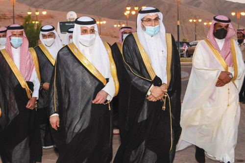 وكان في استقبال سموه لدى وصوله في موقع معرض المشروعات الخاص ببلدية حقل، معالي محافظ المؤسسة العامة لتحلية المياه المالحة المهندس عبدالله بن إبراهيم العبد الكريم، ومحافظ حقل خالد بن بندر الخريصي.