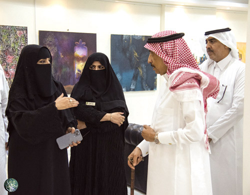 وبعد استقبال سموه ومرافقيه تم استعراض برامج الجمعية ومشاريعها المقبلة, كذلك تم تعريف سموه بأهداف الجمعية ودورها في دعم الفن التشكيلي وفنانيه والارتقاء بالذائقة الفنية وما تقوم به الجمعية من جهود حثيثة في سبيل تحقيق ذلك، ثم قام سموه بجولة في صالة جسفت للفنون التشكيلية شاهد من خلالها الأعمال المعروضة في الصالة بتنوع أفكارها وفنانيها ليعبر سموه عن إعجابه بالأعمال الفنية والمستوى الفني والإبداع السعودي في مختلف مراحل العمر وما تشهده الساحة التشكيلية من تطور ملحوظ وإبداع فني لدى الفنانين التشكيليين في المملكة.