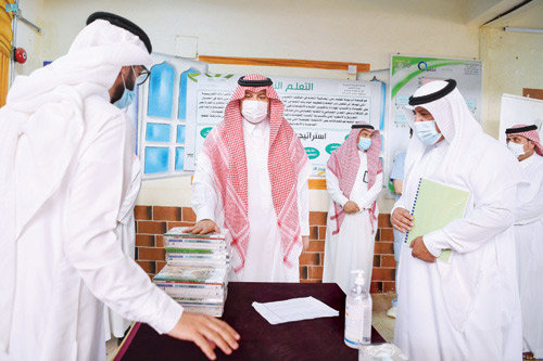 والتقى سمو الأمير فيصل بن خالد بن سلطان خلال جولته بمديري المدارس والمعلمين وأبنائه الطلاب, كما اطلع على الاستعدادات التي أعدتها المدارس للعودة الآمنة وخطة المدارس في تطبيق الإجراءات الاحترازية والتدابير الوقائية، والتوعية الصحية لمواجهة فيروس كورونا. كما وقف على جاهزية الفصول الدراسية, ومصادر التعلّم والعيادات الطبية الملحقة بالمدارس.