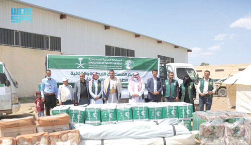 دشَّن مركز الملك سلمان للإغاثة والأعمال اليوم بمحافظة مأرب توزيع مساعدات غذائية و إيوائية للنازحين المتضررين من مديرية رحبة بمأرب.