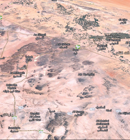 ويقول الشيخ حمد الجاسر: صحراء الإهالة التي بقرب فيد تمتد من قرب فيد شرقاً الى جهة الأجفر وما حولها.