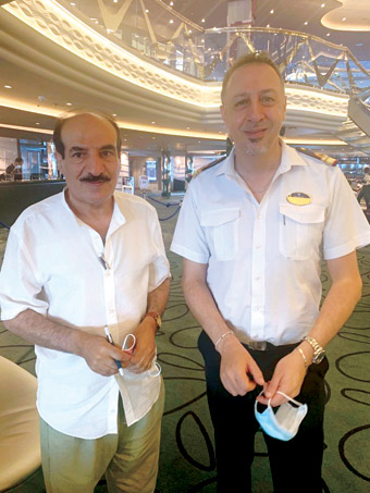 * مسؤول الصحة على الباخرة السيد كرادو بولو.. لدينا نظام صحي لحماية الركاب ولدينا كل الوسائل الحماية للناس من كرونا من خلال الكشف المستمر على الناس، وجدنا التعاون والأخلاق العالية من السياح السعوديين فهم مثال رائع وهم محبون للآخرين، وجدنا سواحًا من نوعية نادرة ولديهم حب للتعرف على جميع برامج الباخرة.
