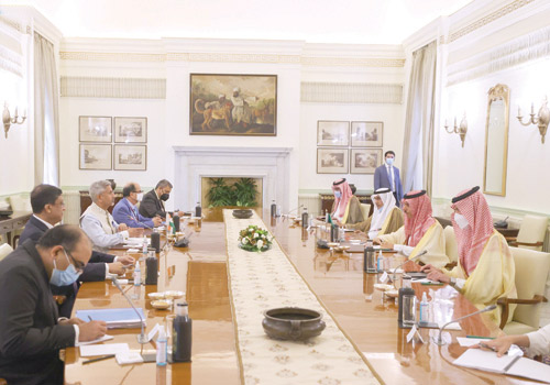 التقى صاحب السمو الأمير فيصل بن فرحان بن عبد الله وزير الخارجية، أمس، معالي وزير خارجية جمهورية الهند سوبراهمانيام جايشانكر، وذلك خلال زيارة سموه الرسمية إلى العاصمة الهندية نيودلهي.