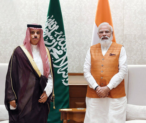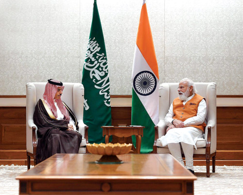 استقبل دولة رئيس وزراء جمهورية الهند ناريندرا مودي، في العاصمة نيودلهي، أمس، صاحب السمو الأمير فيصل بن فرحان بن عبد الله وزير الخارجية.